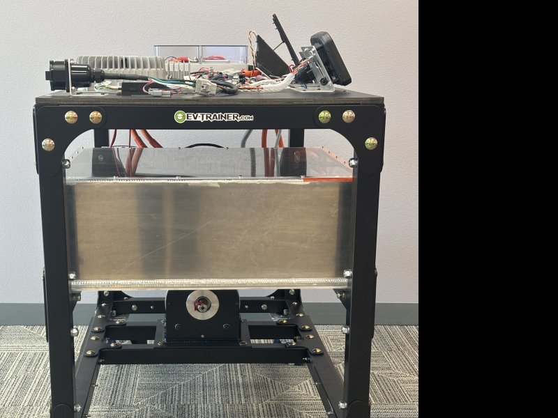 The EV Trainer cart is a fully assembled and fully functional training cart for educators looking for EV teaching aids, and access to a full running system for diagnostic and programming lessons. The system can be 'transplanted' from the cart to a vehicle platform. More details below. • Demonstrate AC motor and inverter controller operation plus safety features. • Describe DC-to-DC converter function. • Explain high voltage charger and electric vehicle supply equipment (EVSE) operation. • Describe the purpose and safety function of the battery management system (BMS). • Connect to controller area network (CAN) and interpret data. • Demonstrate ASE L3 certification competency. Features • Trainer equipped with actual electric vehicle components (no simulators). • Comprehensive courseware including color graphics. • Instructor training included (live or virtual). • Portable and adjustable cart design. • Fully assembled and tested (some locations will have special battery shipping requirements). • Individual components can be removed from platform for closer inspection. • Includes display monitor with Wi-Fi capabilities. Benefits • Components can be transferred to a vehicle under 2000 lbs. for road use. • The cart can be repurposed or recycled. • Teach anywhere, easily fits through a standard ADA compliant doorway. • No subscriptions required. • No special power requirements. • Recharge batteries from any 110 outlet or J1772. Technical Information Dimensions: 52-3/4” x 30-3/4” x 50” (L x W x H) Weight: 553 lbs. (will vary with options) Compliance: ADA Doorway Compliant