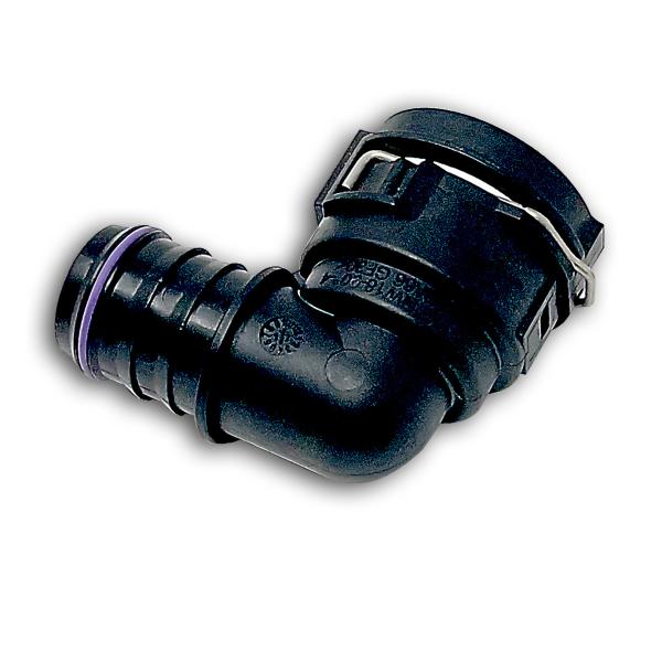 Snap on factory coolant fitting for Tesla Model 3/Y battery pack. This is for the external fittings on the battery pack, this is not compatible with the coolant fittings on the individual battery modules internal to the pack.